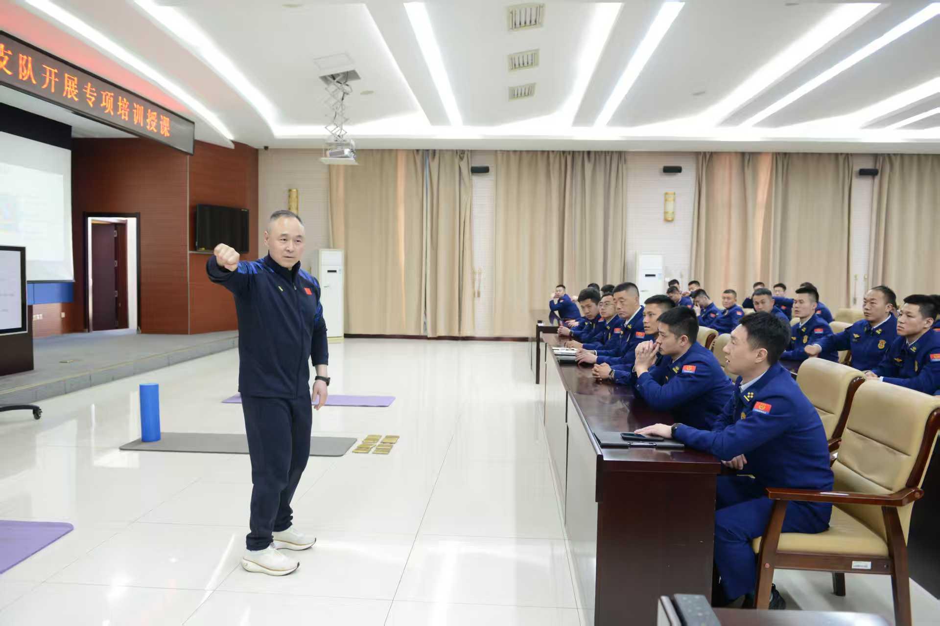 培训中,牛雪松教授紧密结合冬奥国家队训练积累的尖端经验与消防救援高负荷、高风险的实战特点,系统阐述了在高强度作业环境下科学提升体能、有效预防损伤与加速功能康复的理论与方法。他围绕灭火救援核心任务,重点解析了功能性训练体系构建、心肺耐力专项强化等内容的科学逻辑与实施路径,进一步夯实了指战员“训练即备战、训练必科学”的专业化理念。